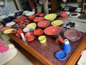 展示会でも、朱色の器や黄色の器はとても好評でした。