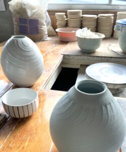 壺はだいぶ昔に作ったもので、使った釉薬の記録はなくて、再度作るのに、試行錯誤を何年も繰り返しているそうです。