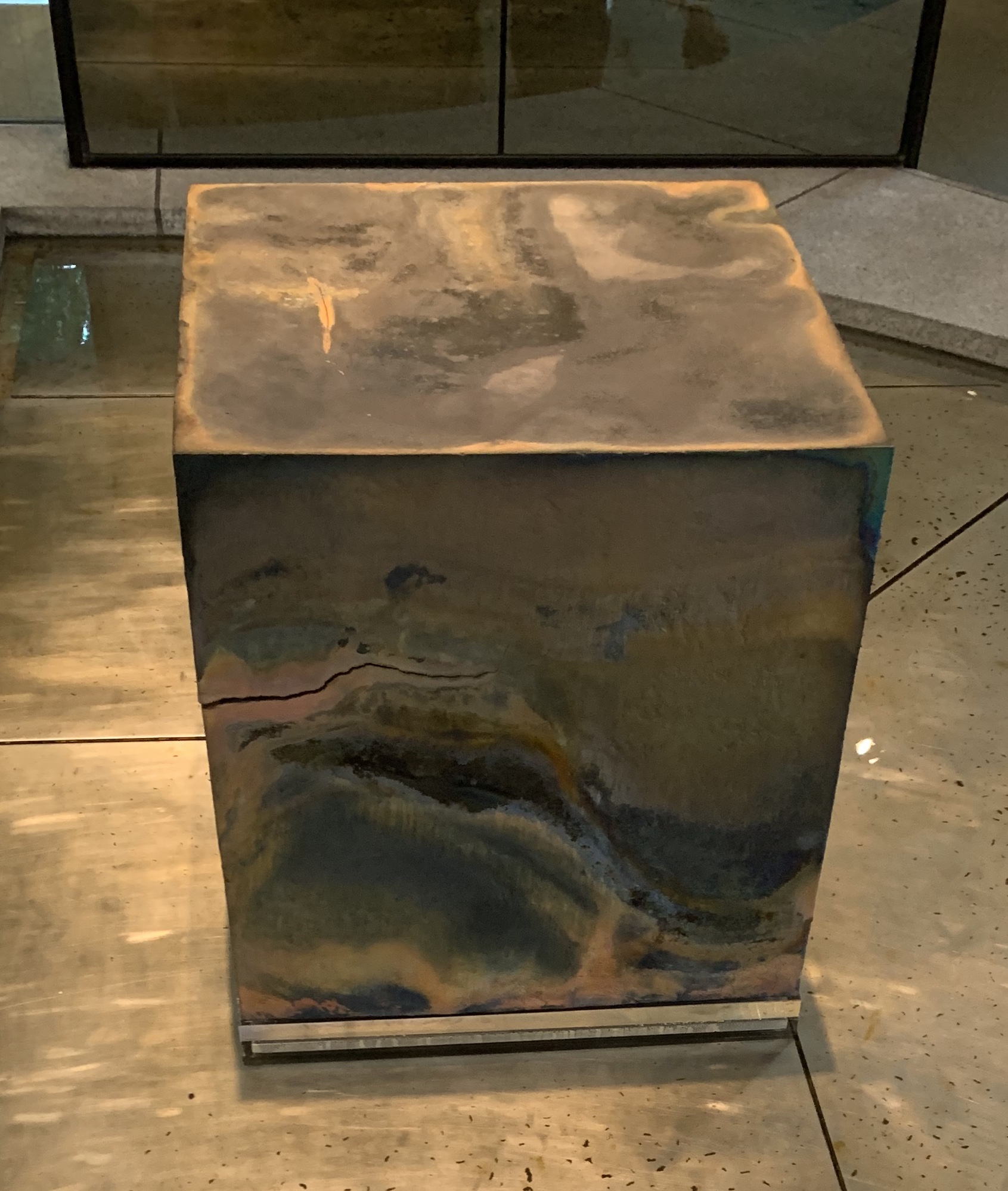 年度に何層もの金属が施され釉薬が塗られた酸化金属。ひびが面白い。