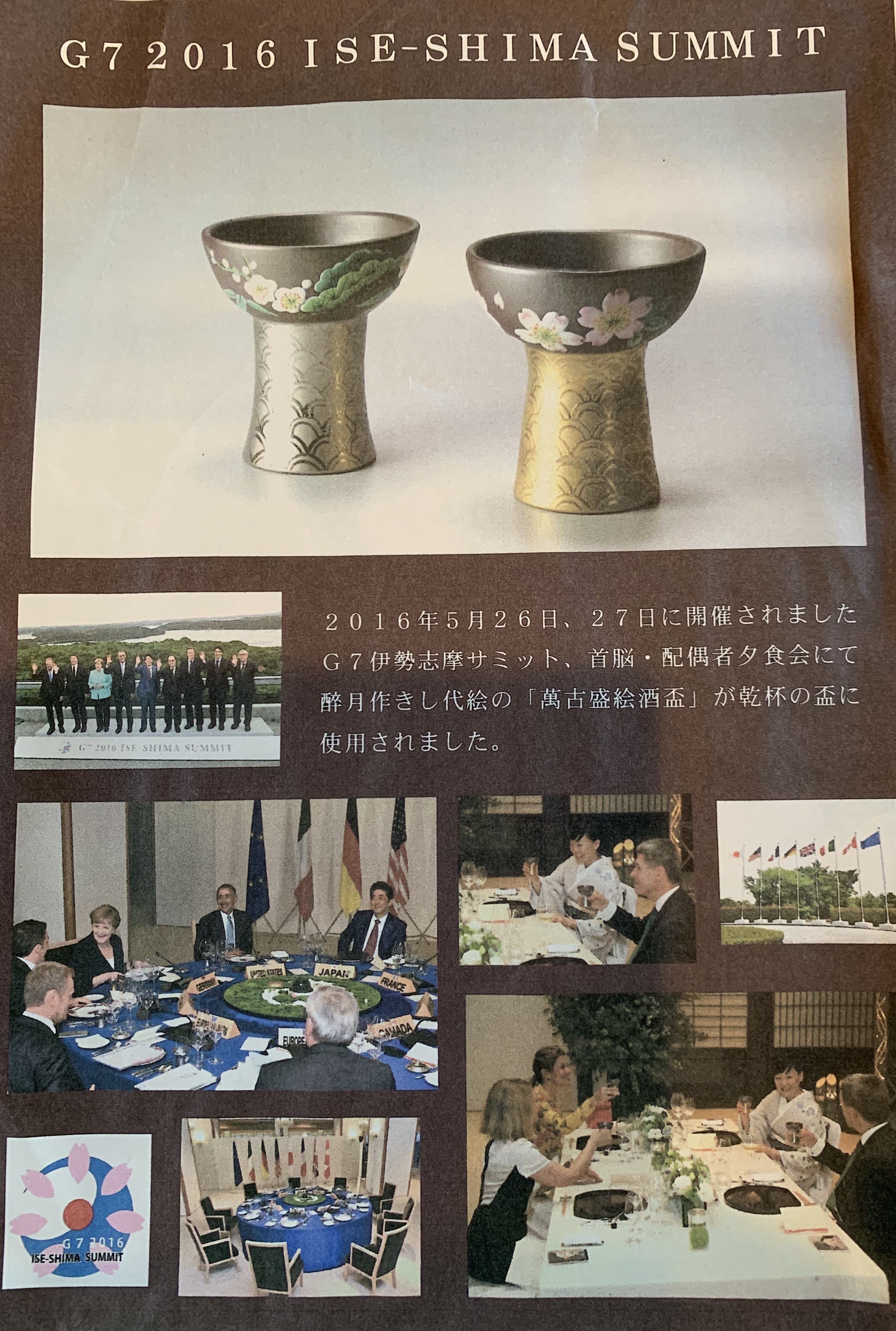 醉月窯さんは、2016年G7伊勢志摩サミット夕食会で乾杯に使われた萬古焼盛絵酒杯を作られた窯です。