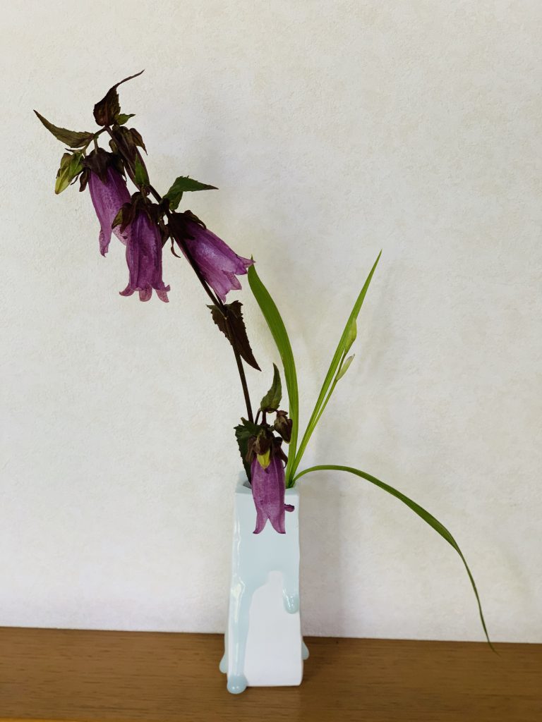 砥部焼 遠藤裕人さんの一輪挿しにホタルブクロを。