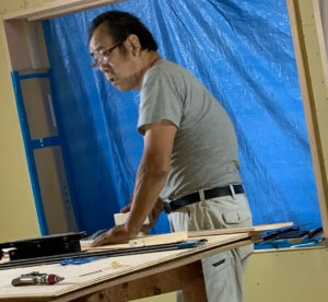 夕方暗くなって、大工さんが帰られる時は、最敬礼したくなります。手を振って見送ります。