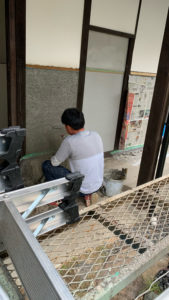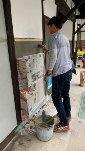 大工さんの仕事が終わると左官屋さんの壁作りが始まります。