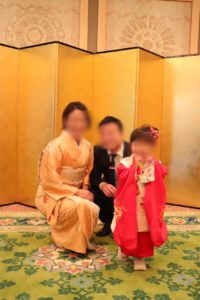 Recientemente hay padres que los niños se ponen vestidos tradicionales pero los padres se ponen ropas informales. Si, es cierto que los protagonistas de Shichi-Go-San son los niños, pero todavía yo pienso que sea mejor que los padres vistan lo mejor que posible para cada uno. Es una ceremonia muy importante para sus niños y rezamos frente de Dios. Yo quiero respetar el significado de”Shichi Go San.”