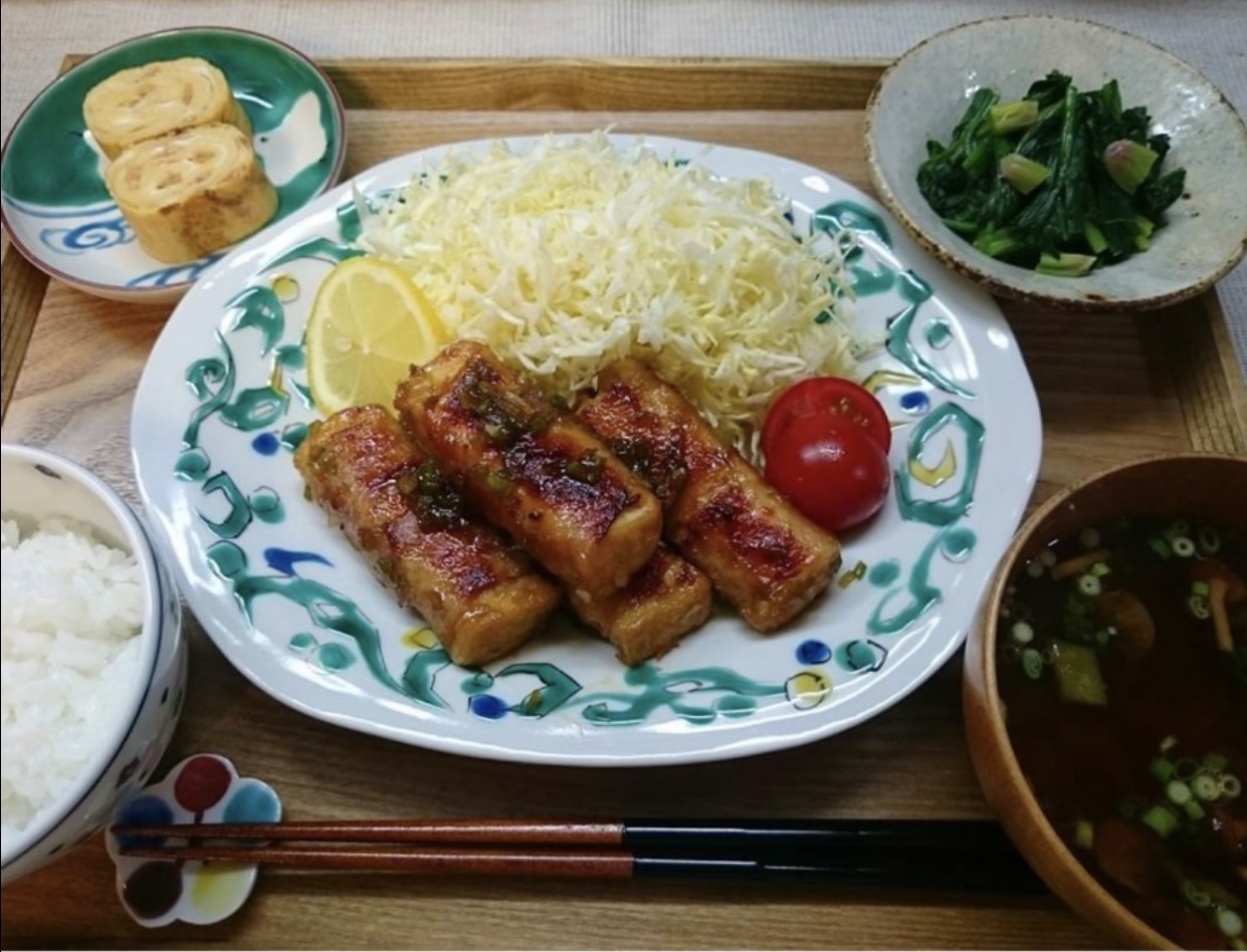 Comemos dos tazas o platos de verdura y una taza de sopa de soja.
