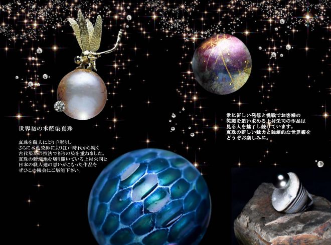 ニューヨーク、香港、東京、大阪・・・・各地で真珠の質のみならず、その斬新なデザインでとても評価が高い上村栄司氏。