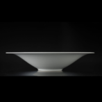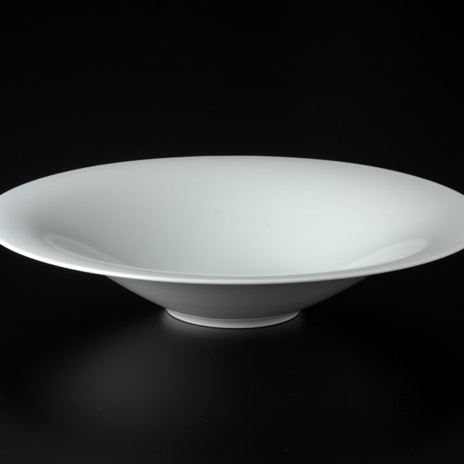 - 側面から見ると、シャープな水平線とボディの膨らみが対照的でとても綺麗です。また器にとても存在感があります。他の花器を持っていても、結局使うのはこの水盤ばかりです。